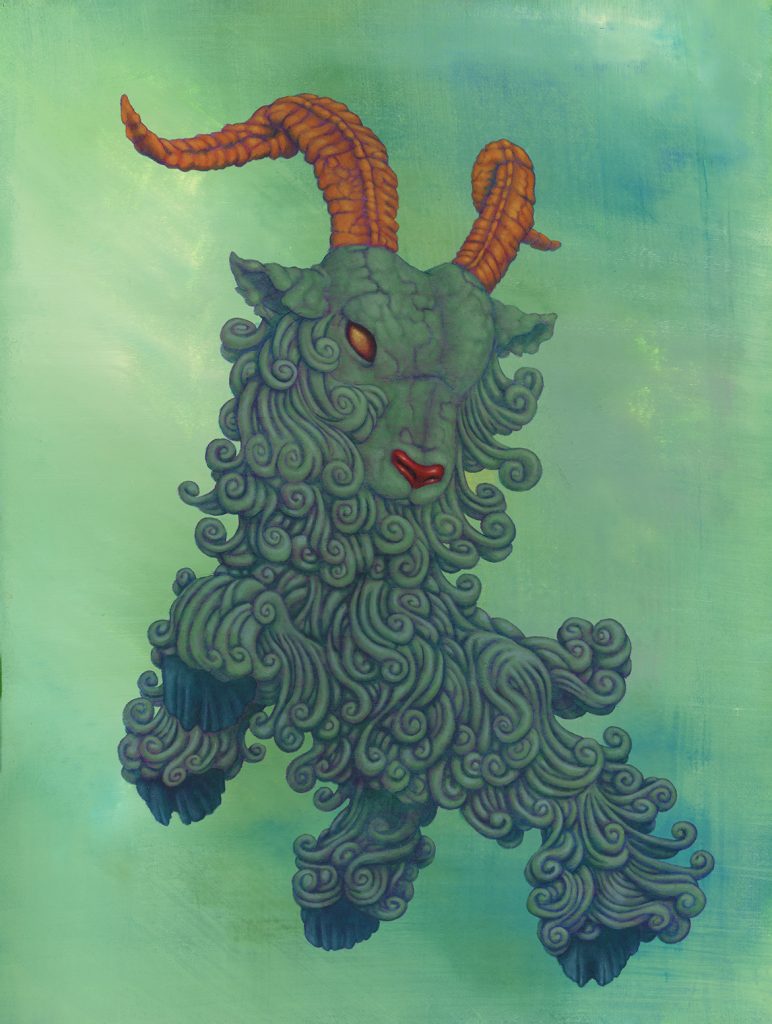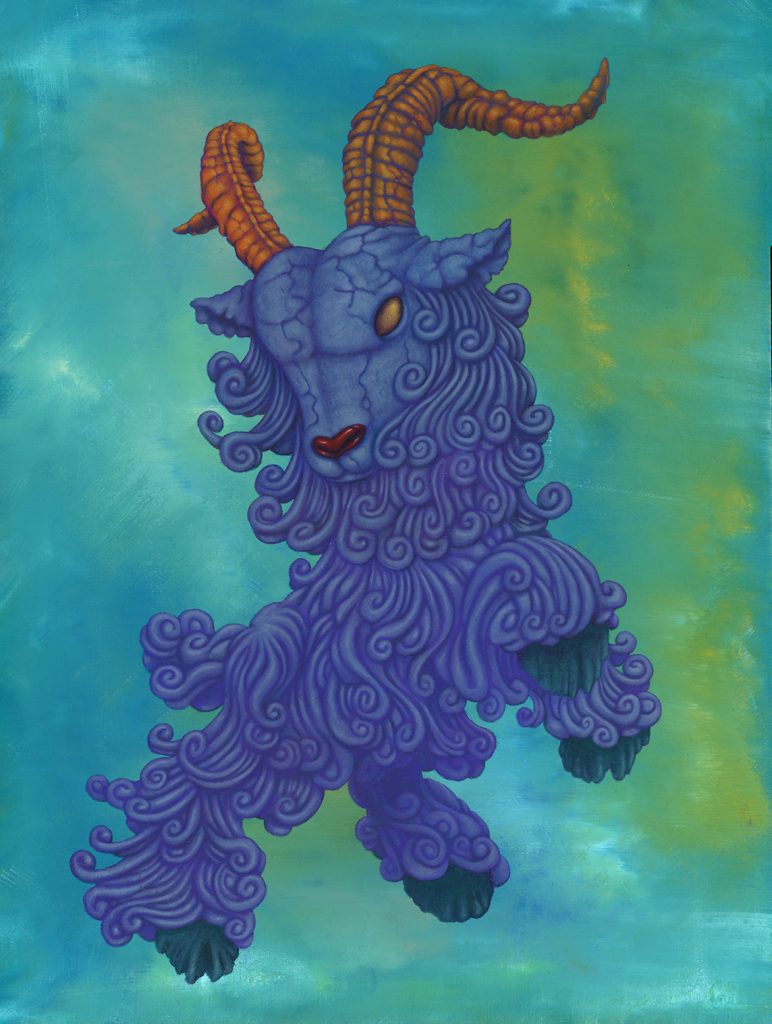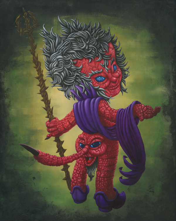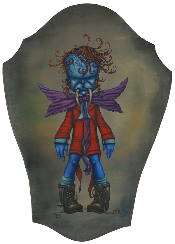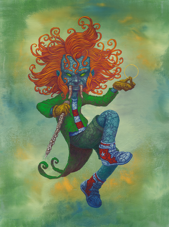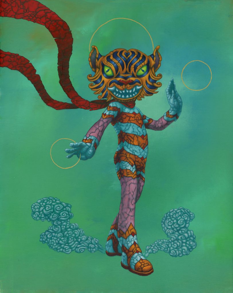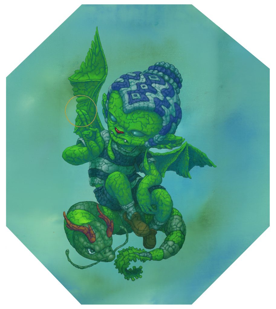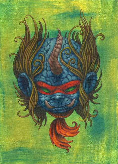 I use oil sticks and acrylic on wood panels. The golden halos are made with gouache.