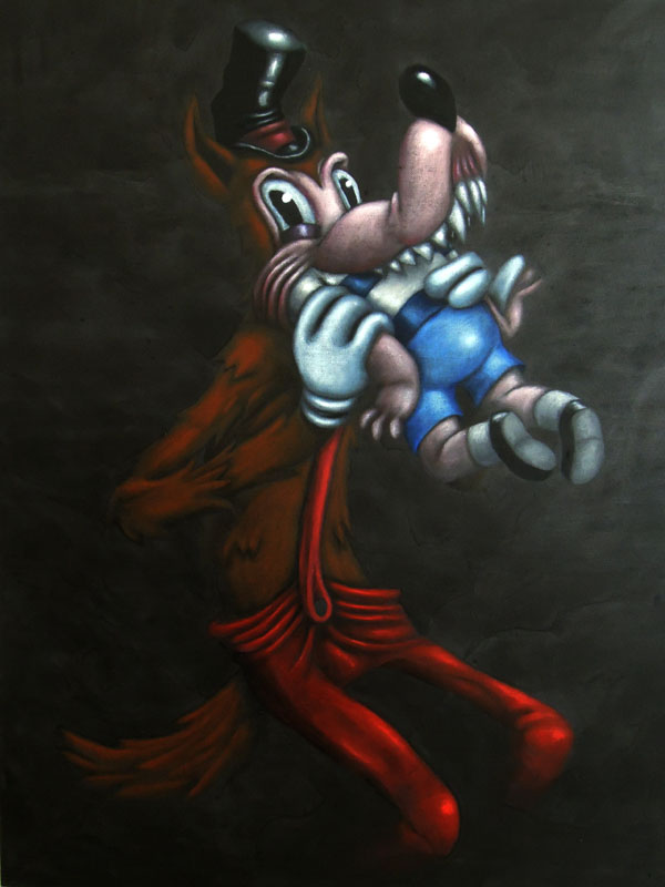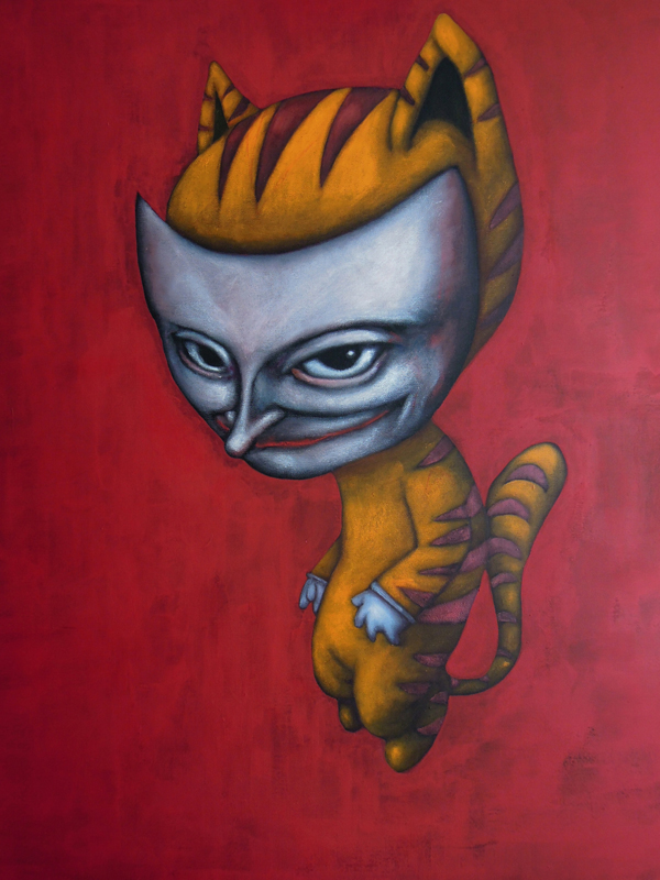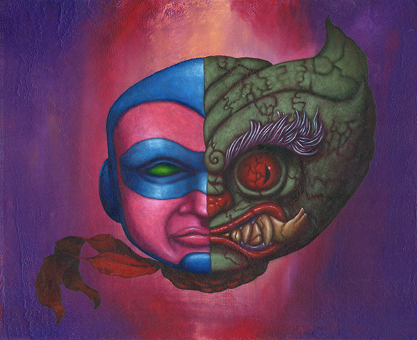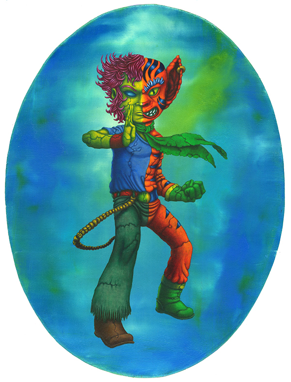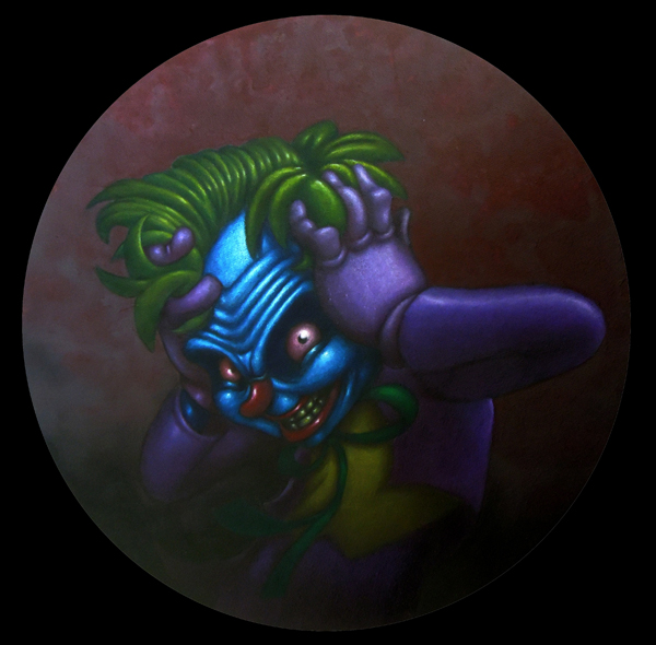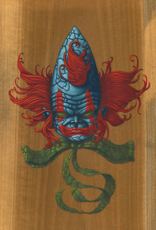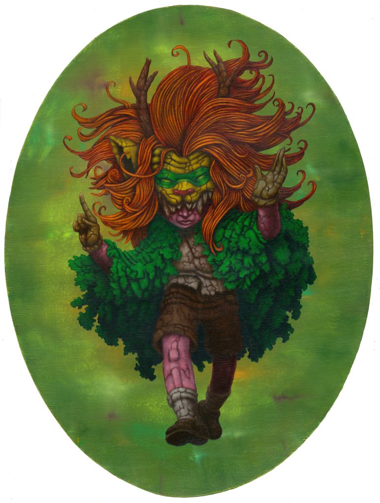 J’utilise des bâtons de peintures à L’huile et de l’acrylique, le tout sur des panneaux de bois.